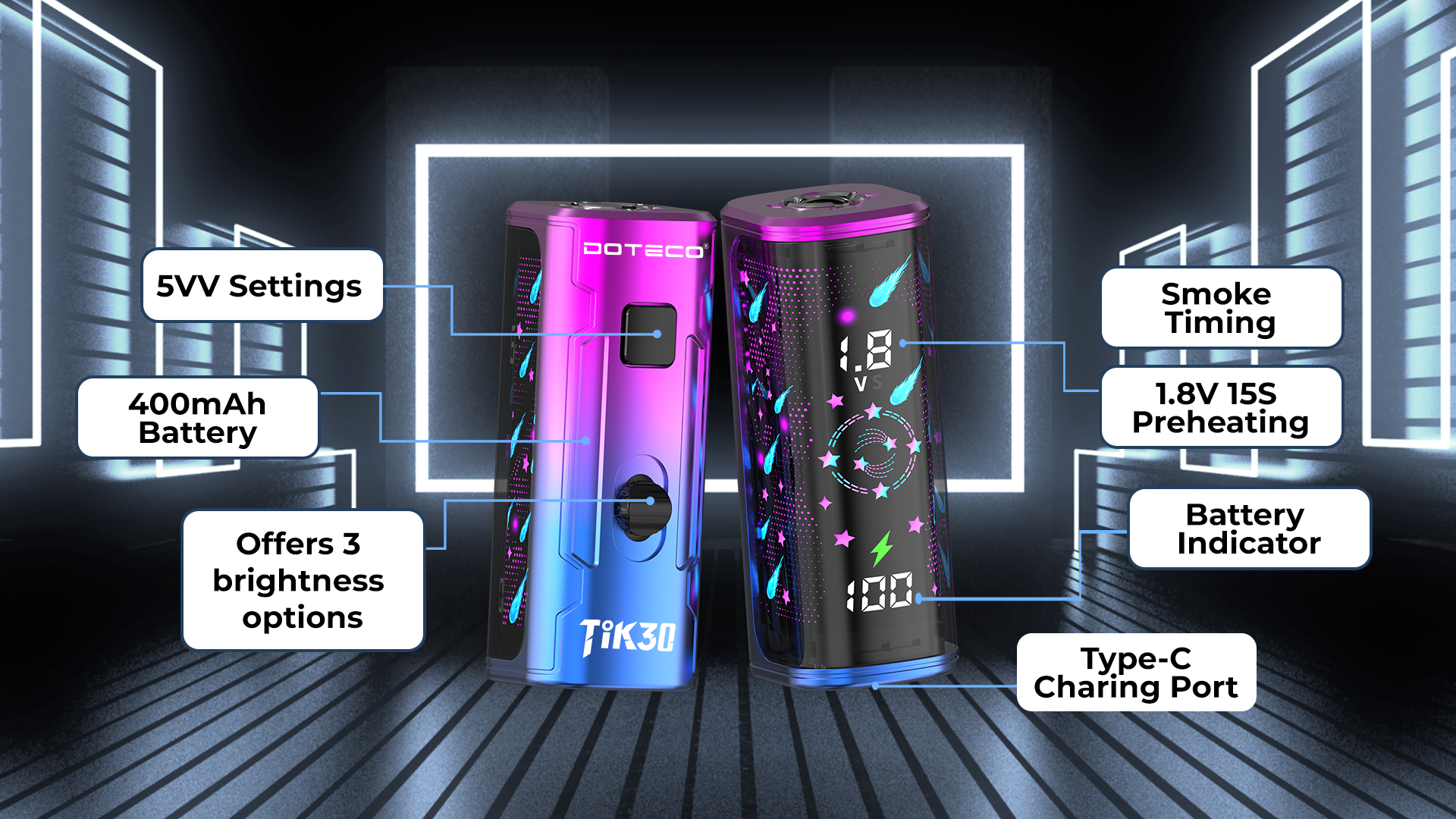 Discover the TIK30, a revolutionary curved screen 510 battery that’s redefining the vaping game!