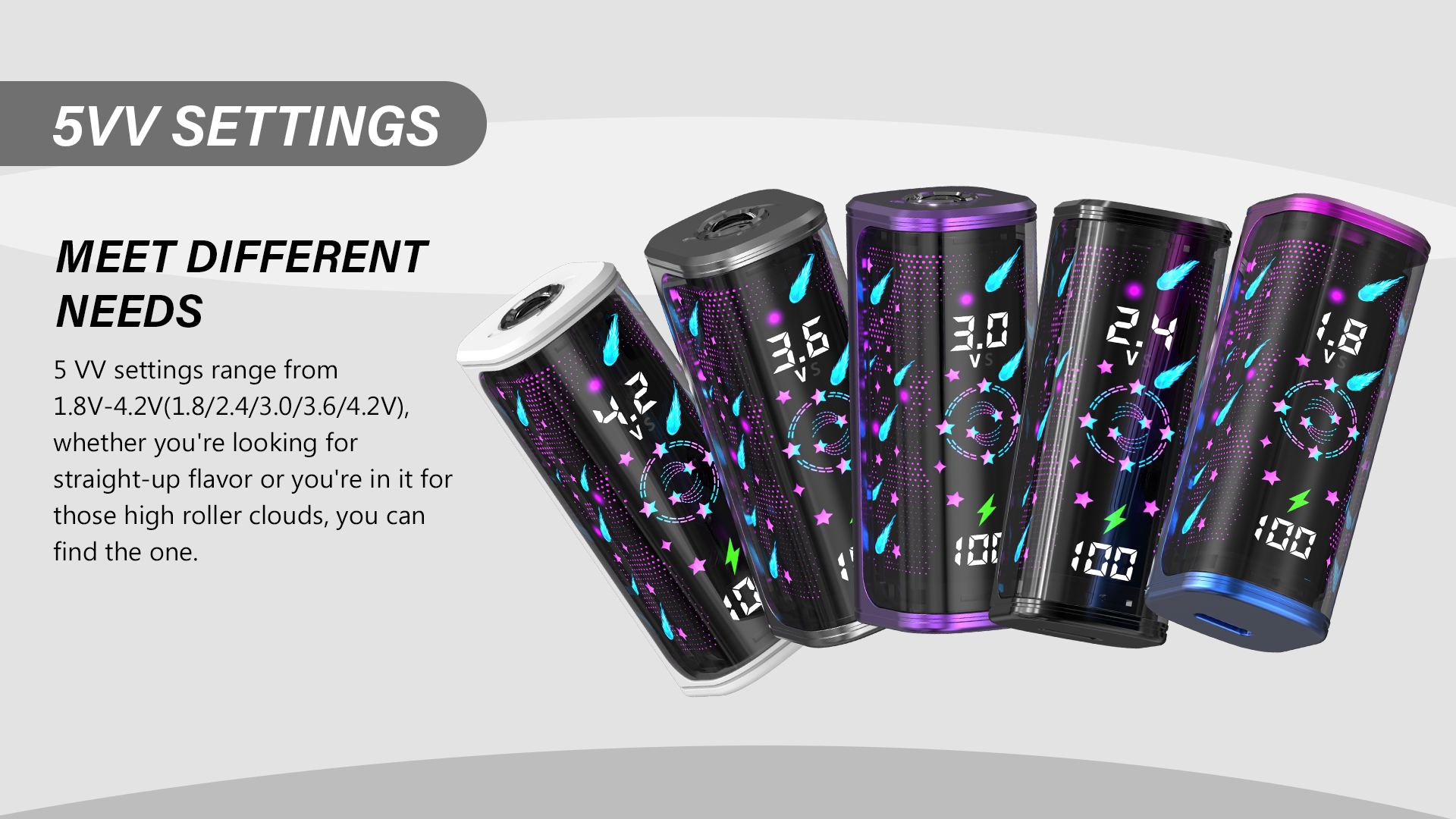 As the world’s first starry sky curved – screen 510 battery, it catches eyes right away with its unique, dreamy design. But it’s not all about looks—this battery is loaded with features to enhance your vaping experience.
