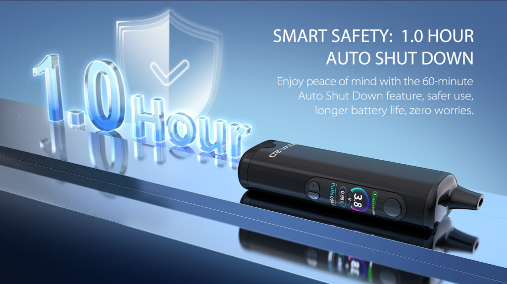 Similar to how some desktop dry herb vapes like the volcano have an air pump, the device pushes the vapour out for you, eliminating the need to inhale using your lungs. Pressing the + and – buttons at the same time automatically enables this mode, expelling the vapour right out the mouthpiece for you!